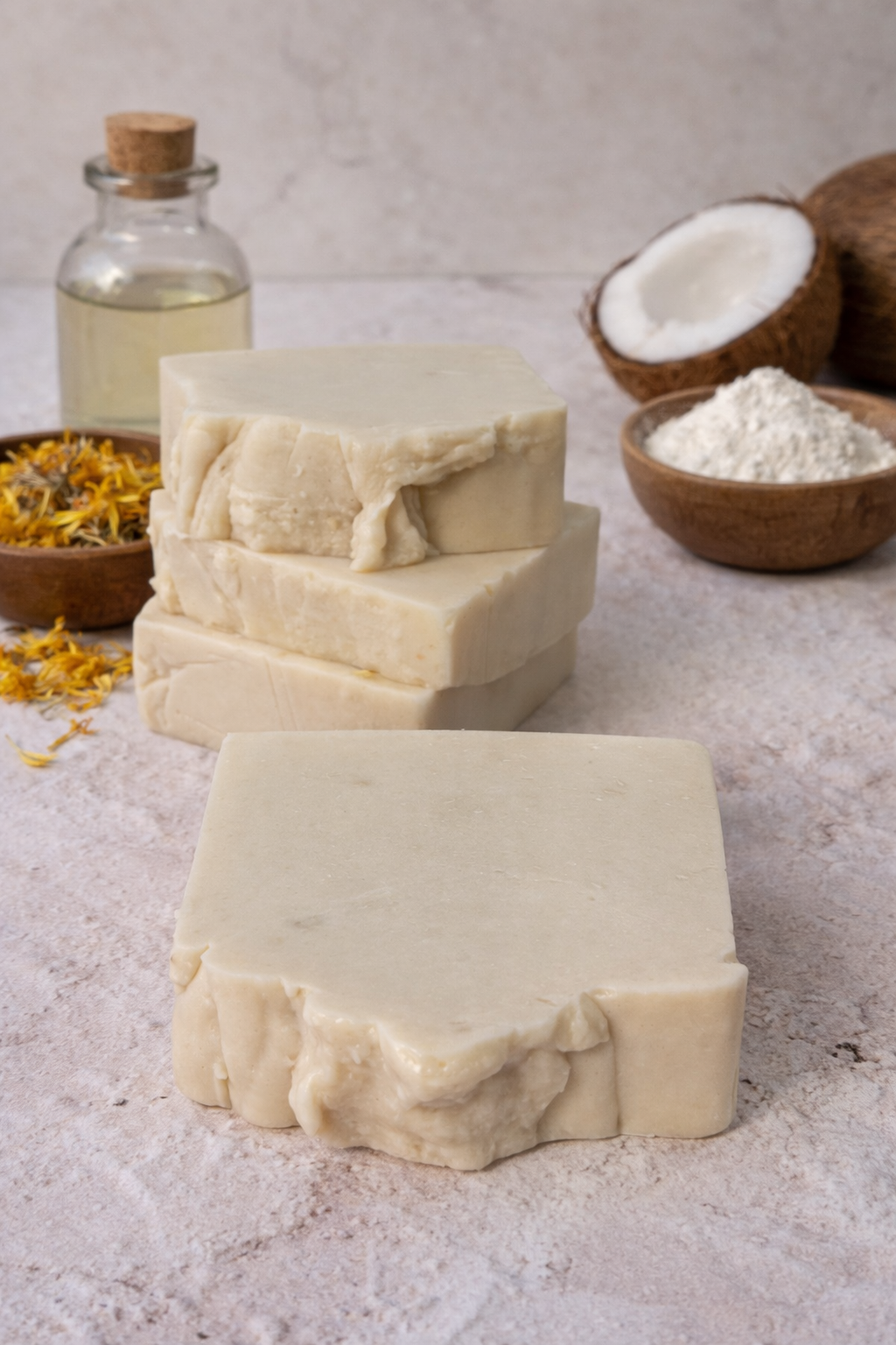 SABONETE GLICERINADO DE ARGILA BRANCA, CALÊNDULA E LEITE DE CABRA